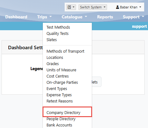1. Navigate to the catalogue drop-down menu and select "Company Directory"