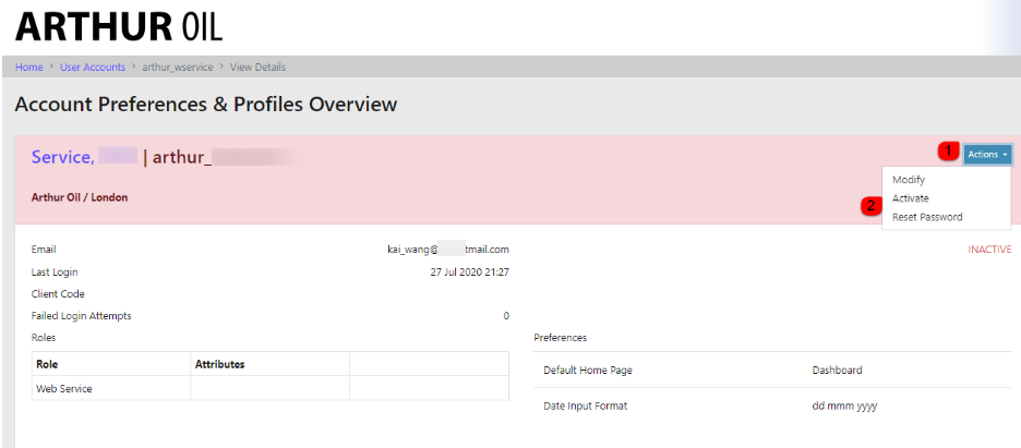 4. Open the user account and select the actions drop-down menu and select Activate
