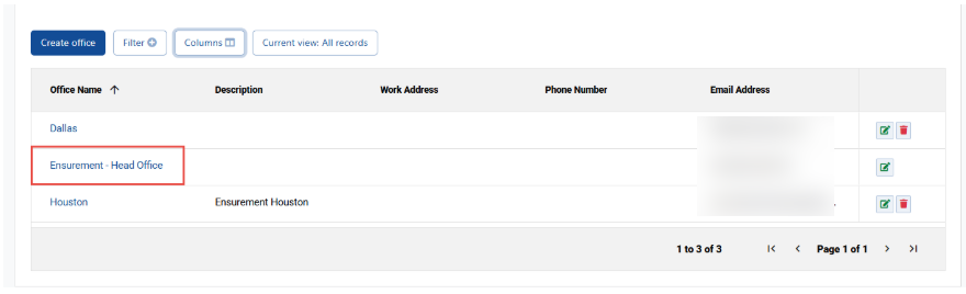 3. From the Company view page, click on the office you wish to edit