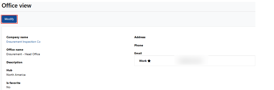 4. Click Modify on the Office View page