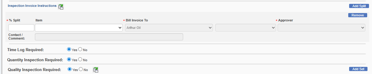 5. Enter the cost allocation; select yes for Quantity or Quality or both, and select yes for Time Log if required.